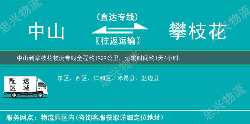 ★ 本站所列中山橫欄鎮到攀枝花物流專(zhuān)線(xiàn)費用與時(shí)效僅供參考,如需詳細了解收費標準請電話(huà)咨詢(xún)。