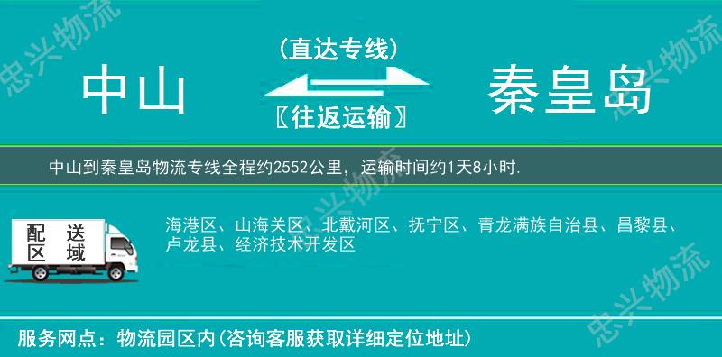 ★ 本站所列中山橫欄鎮到秦皇島物流專(zhuān)線(xiàn)費用與時(shí)效僅供參考,如需詳細了解收費標準請電話(huà)咨詢(xún)。
